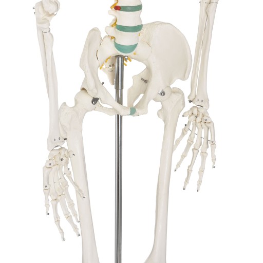 Model szkieletowy jest bardzo zbliżony do prawdziwej struktury kości człowieka. Składa się z około 200 kości, które przypominają swoim rozmiarem kości prawdziwego mężczyzny. Wszystkie ważne struktury i formuły są również zachowane. Dzięki elastycznym połączeniom gumowym w stawach można dobrze zrozumieć wszystkie naturalne ruchy stawów. Nawet ruchy ślizgowe w stawach można wizualizować zgodnie z naturą. Trzyczęściową czaszkę można zdemontować w podstawie czaszki, żuchwie i czaszce, a także zawiera wszystkie ważne struktury i bruzdy. Ramiona, nogi i stopy można szybko usunąć za pomocą szybkiego zwalniania i ponownie przymocować. Pozwala to na dokładną kontrolę kończyn z bliska i przekazywanie ich innym.