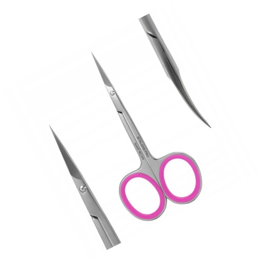 Profesjonalne nożyczki Staleks PRO Smart 40 SS-40/3 przeznaczone są do pracy ze skórkami. Nożyczki posiadają zakrzywione ostrza ułatwiające pracę. Taki kształt ostrzy dopasowuje się do kształtu paznokcia, zapewnia doskonały widok i ułatwia pracę w trudno dostępnych miejscach. Podobnie jak wszystkie narzędzia Staleks PRO, nożyczki Smart 40 wykonane są z wysokiej jakości stali, ręcznie ostrzone i polerowane pastą GOI dla odporności na korozję.