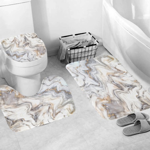 Pakiet zawiera: 3 szt. / zestaw dywanik toaletowy, 6 szt. naklejek antypoślizgowych