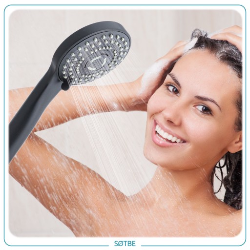 Lekka bezpieczna dla wanny WODOOSZCZĘDNA słuchawka prysznicowa trzy zakresowa SOTBE LARK z systemem ANTI CALC kolor czarny mat