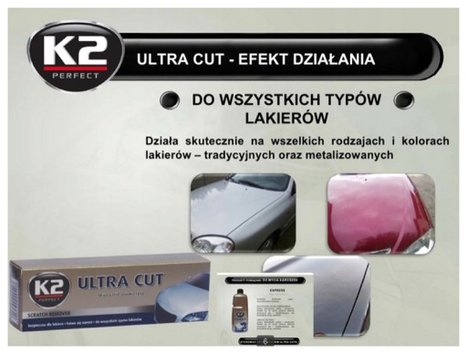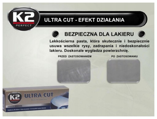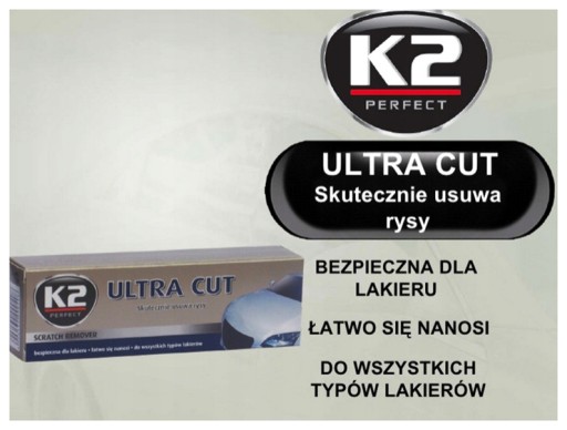 K2 ULTRA CUT to pasta lekkościerna do usuwania rys, zadrapań oraz niedoskonałości lakieru. Doskonale wygładza powierzchnię. Działa skutecznie na wszelkich rodzajach i kolorach lakierów - tradycyjnych oraz metalizowanych.