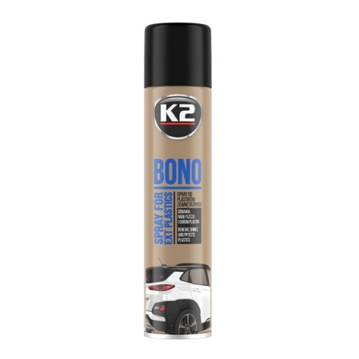 K2 BONO to wysoce skuteczny produkt do odnawiania i zabezpieczania wszelkich powierzchni plastikowych, winylowych, elementów gumowych. Przywraca oryginalny kolor. Pozostawia głęboki połysk. Idealnie nadaje się do zderzaków, listew bocznych, spojlerów i innych plastikowych elementów samochodowych. Długotrwale zabezpiecza przed wyblaknięciem, spękaniem i działaniem promieni UV.
