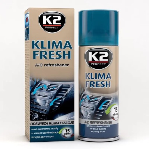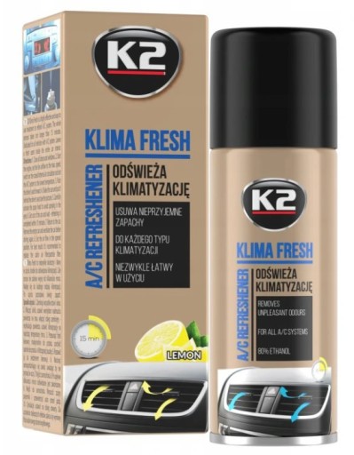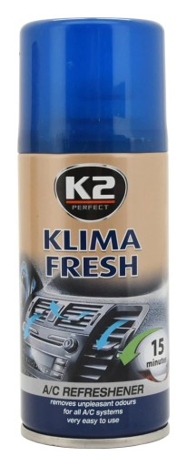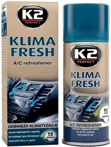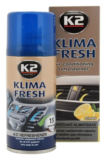 K2 KLIMA FRESH to niezwykle skuteczny i łatwy w użyciu środek do odświeżania klimatyzacji. Usuwa nieprzyjemne zapachy, które powstają na skutek zanieczyszczeń i wilgoci w układzie wentylacyjnym. Cały proces nie zabiera więcej niż kilkanaście minut. Nadaje się do każdego typu klimatyzacji. Po użyciu pozostawia świeży cytrynowy zapach.