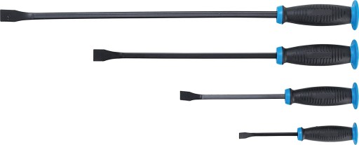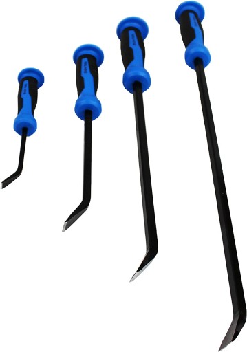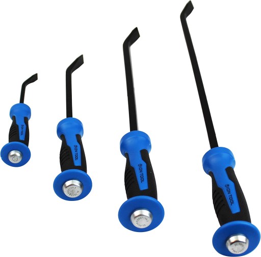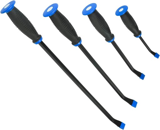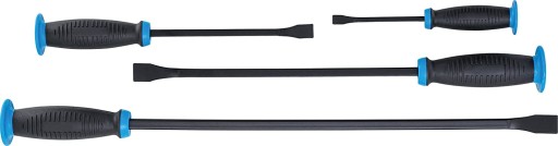Wyprofilowane rękojeści pokryte wytrzymałym tworzywem PCV dla zapewniania odpowiedniego chwytu oraz zakończone kapturkiem umożliwiającym pobijanie. Posiadają kątowy wierzchołek, który oferuje dodatkowy punkt dźwigni dla pracy w wąskich obszarach, a zaostrzone końce z dużą łatwością wchodzą między złączone elementy.