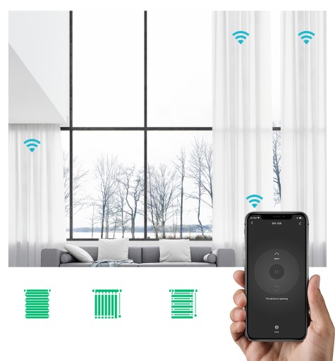 Produkt umożliwia sterowanie z aplikacji TUYA na smartfonie roletami, markizami, żaluzjami, zasłonami - wszelkimi napędami sterowanymi zasilaniem 230V.