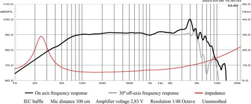 - Zastosowanie wysokoenergetycznego magnesu ferrytowego umożliwiło uzyskanie efektywności na poziomie 91 dB.