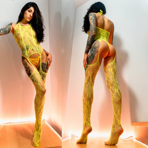 SEKSOWNA BIELIZNA Damska Sexy Komplet ŻÓŁTY KORONKOWY BIELIZNY BODY STRINGI
