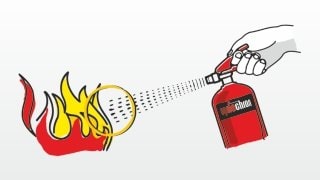 4. Omiataj strumieniem środka gaśniczego źródło ognia dopóki ogień nie zgaśnie. Trzymaj gaśnicę pionowo.