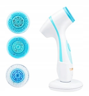 - 3 nasadki (1x miękka szczoteczka, 2x silikonowa głowica masująca)