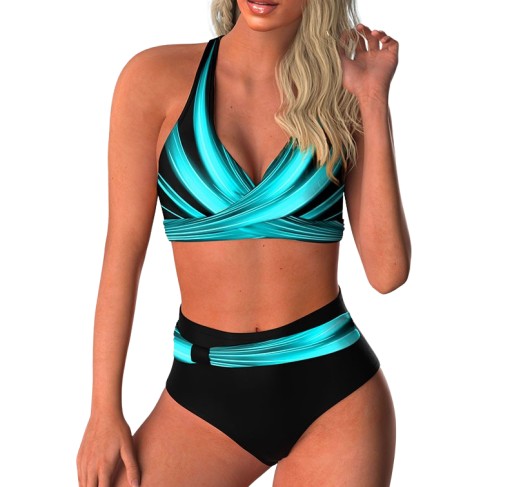 ⭐ Turkusowy Metaliczny Top: Elegancki, krzyżowany fason, który zapewnia wyjątkowy wygląd i wsparcie.