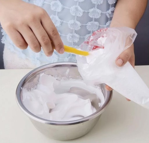 Jednorazowe worki foliowe do wykonywania dekoracji z kremów i mas cukierniczych. Końcówkę rękawa należy odciąć samodzielnie dopasowując wielkość otworu.