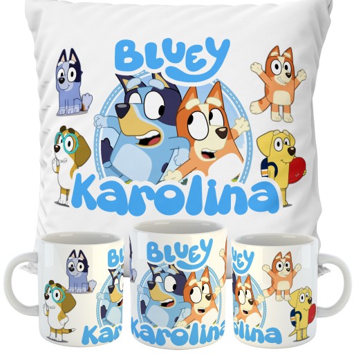 ZESTAW PODUSZKA + KUBEK BLUEY + TWOJE IMIĘ!