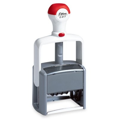 Datowniki Shiny E-917 przeznaczone do profesjonalnych zastosowań cechuje wysoka odporność konstrukcji i wygoda użytkowania. Ergonomiczny, przyjemny w dotyku dzięki miękkiej gumie uchwyt oraz sprężyna dostosowana do masy pieczątki, dbają o komfort użytkowania. Specjalne osłony wykluczają ubrudzenie rąk podczas aktualizacji. Pieczątka datownik Shiny E-917 ma możliwość zmiany daty przez 10 lat. Jakość pieczątek Shiny potwierdza światowy sukces firmy oraz ponad pół wieku doświadczeń w produkcji datowników i numeratorów. Gumka pieczątki ze sklepu AMB jest wysoce odporna na parcenie, puchnięcie w tuszach wszystkich producentów, a laserowa obróbka sprawia że odbijane wzory pieczątek są idealnej jakości.