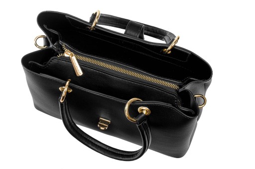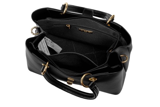 Torebka zapinana jest na zamek błyskawiczny i klapką na przekrętkę. Ponadto w środku znajdziemy również zasuwaną kieszonkę na dokumenty, a także dwie boczne otwarte kieszonki na telefon komórkowi i inne kobiece drobiazgi. Kuferek zawieszony na podwójnych rączkach, dzięki którym możemy go nosić w ręku, a także przez ramię jako listonoszkę, za pomocą dopinanego długiego paska. Zapraszamy do skorzystania z naszej oferty. Gorąco polecam.