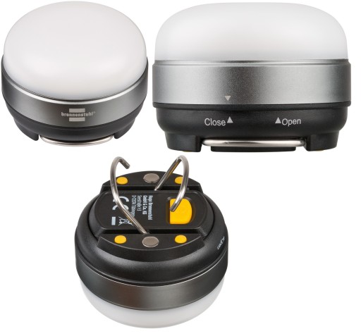 - Lampa campingowa LED o 3 poziomach jasności: 100%, 50% i 10%.