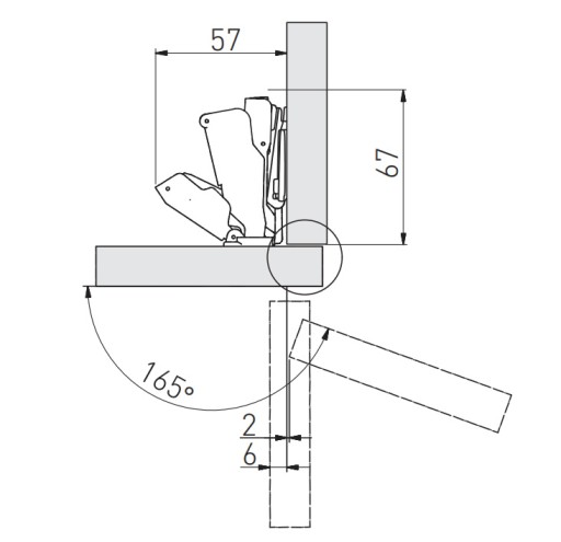Zawias charakteryzuje się wysoką jakością o szerokim kącie otwarcia 165°. Technologia cichego domyku sprawia, że zawias charakteryzuje się wysoką kulturą pracy. Jego montaż jest ułatwiony dzięki prowadnikowi clip-on, regulacji w trzech płaszczyznach i mimośrodowej regulacji. Produkt wykonany jest w całości ze stali.