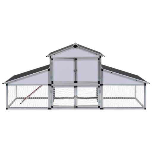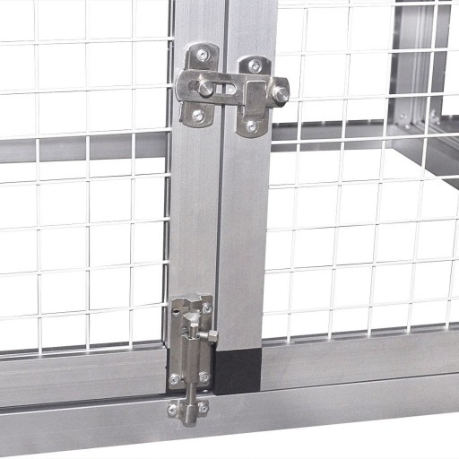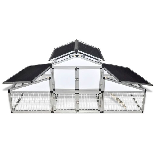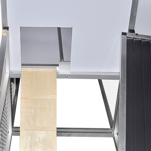Dzięki wysokiej jakości aluminiowej konstrukcji kurnik ten jest wytrzymały i trwały. Dachy można otworzyć odkręcając śruby mocujące, aby wpuścić do wnętrza światło i powietrze.