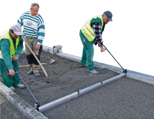 Aluminiowy profil TELEPLAN TP ma kształt sierpa. Dzięki temu profil wrzyna się w podsypkę i nie przesuwa się do góry! Nie ma potrzeby użycia siły, aby popchnąć go w dół podczas ciągnięcia. Zwłaszcza podczas niwelacji zagęszczonego piasku, również w przypadku, gdy łata niwelacyjna nie może być przesuwana na boki przecinając podsypkę ze względu na boczne przeszkody lub granice, zalety profilu TP są ogromne, jeśli chodzi o wysiłek włożony w układanie, szybkość pracy i wysoką jakość kładzenia. Dwa (2) profile TP można łączyć ze sobą, aby w prosty i stabilny sposób regulować je teleskopowo. Wówczas jedno i to samo narzędzie może być używane do różnych szerokości roboczych.Dwa stałe zespoły zaciskowe do połączenia obu profili, zespołów zaciskowych nie wolno zgubić.Z obustronnym ogranicznikiem wysokości z regulacją wysokości, zakres regulacji wynosi 0-127 mm. W razie potrzeby może być szybko zdjęty.
