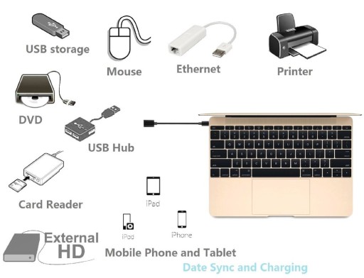 - Do podłączania zewnętrznych urządzeń USB z gniazdem C np. smartfon / tablet, HDD/SDD ) do Komputera / Laptopa z portem USB-A lub ładowarki USB - jednokierunkowy