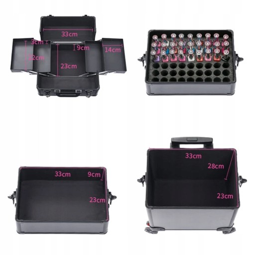 Dzięki swojej 4-warstwowej strukturze i różnym rozmiarom i układom komór, zapewnia odpowiednią ilość przestrzeni na produkty kosmetyczne, akcesoria i narzędzia.