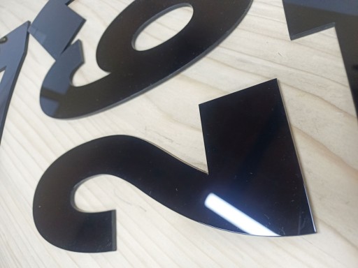 - cyferki, literki wykonane z czarnej plexi o grubości 3 mm