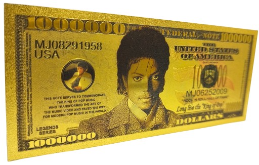 Piękny pozłacany banknot z wizerunkiem MICHAELA JACKSONA.