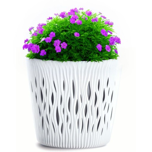 Doniczka została wyprodukowana przez renomowaną polską firmę Prosperplast, której wyroby z tworzyw sztucznych charakteryzują się precyzyjnym wykonaniem, wyjątkowymi wzorami. Jest to doniczka z serii Texture & Woven. Ażurowe sploty przypominające grubą włóczkę, a także pastelowe oraz neutralne kolory, to główne wyróżniki, jeśli chodzi o doniczki plastikowe właśnie tej serii. Wszystko to w wielu różnych wariantach wykończenia oraz kształtach tak, aby wpisać się w potrzeby różnych Klientów.