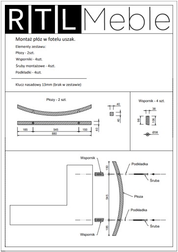 Oferta zawiera PŁOZY do fotela 2 szt.