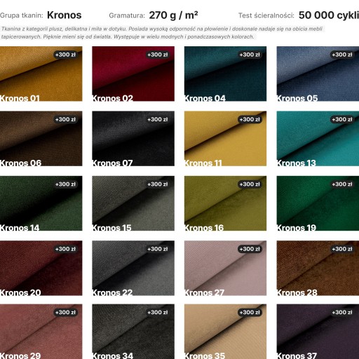 Dla tkaniny z grupy KRONOS przewidziana jest dopłata w wysokości 300 zł.