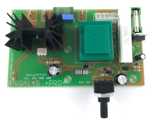 Na innej aukcji mamy wersję PRO tej płytki która zamiast mechanicznego przekaźnika załączającego spawanie (jest to element który najszybciej się zużywa w tych płytach) - posiada łącznik półprzewodnikowy, dzięki czemu "żywotność" płyty jest zdecydowanie dłuższa. Obok fotografia tej płyty.