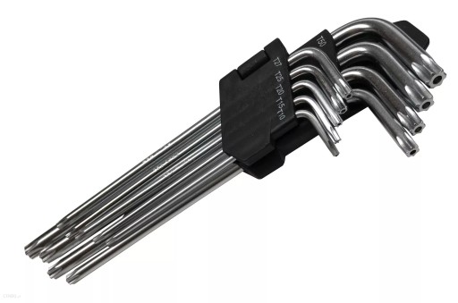 Bardzo precyzyjny zestaw dwustronnych kluczy torx, który umożliwia pracę w trudno dostępnych miejscach. Klucze w kształcie litery "L", z pewnością świetnie poradzą sobie z precyzyjnymi pracami.