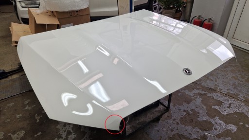 Mercedes E-klasa W213 Lift Maska , delikatnie uszkodzona z prawej strony nad atrapą, wszystkie uszkodzenia na zdjęciach, kolor zwykły biały.