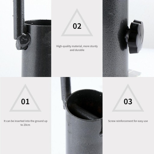 Kotwica wykonana jest z solidnego materiału, który jest wytrzymały na wiatr i deszcz. Twój parasol będzie bardziej podatny na przekształcenie lub zerwanie, zamontujesz go w ziemi za pomocą tej kotwicy