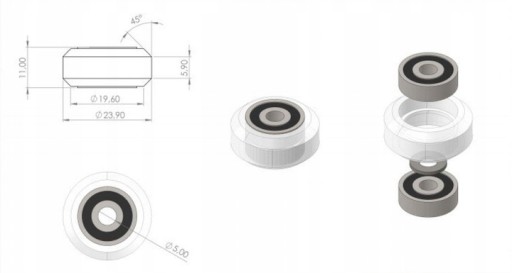 Kompletny zestaw zawierający wszystkie elementy niezbędne do montażu kołek. Wytrzymała alternatywa dla czarnych kół Delrin które pod większym naciskiem pękają.