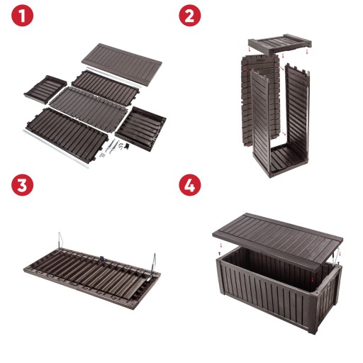 - Funkcja siedziska - pokrywa wytrzyma nacisk do 300 kg, co sprawia, że skrzynia może posłużyć jako siedzisko