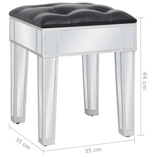 Dzięki lustrzanej powierzchni zestaw mebli unowocześni wnętrze i stworzy wrażenie większej przestrzeni. Gałki ze sztucznych kryształów nadają stolikowi wyszukany wygląd i ułatwiają otwieranie szuflad. Siedzisko obito sztuczną skórą, przez co jest wygodne i luksusowe.