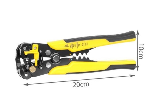 - SPECYFIKACJA - kolor: żółto-czarny; materiał: stal chromowo-wanadowa / PP / TPR; antypoślizgowa nakładka: TAK; mechanizm: czołowy, automatyczny; ściąganie izolacji z kabli o średnicy: 0,2 - 6 mm² (10 - 24 AWG); zaciskanie końcówek konektorowych izolowanych: 0,5 - 6 mm² (22-10 AWG) i nieizolowanych: 4 - 6 mm² (12-10 AWG), 1,5 - 2,5 mm² (16-14 AWG), 05 - 1mm² (22-18 AWG); wymiary (dł/szer/wys): 20/10/3 cm; waga: 0,35 kg; waga w opakowaniu: 0,4 kg.
