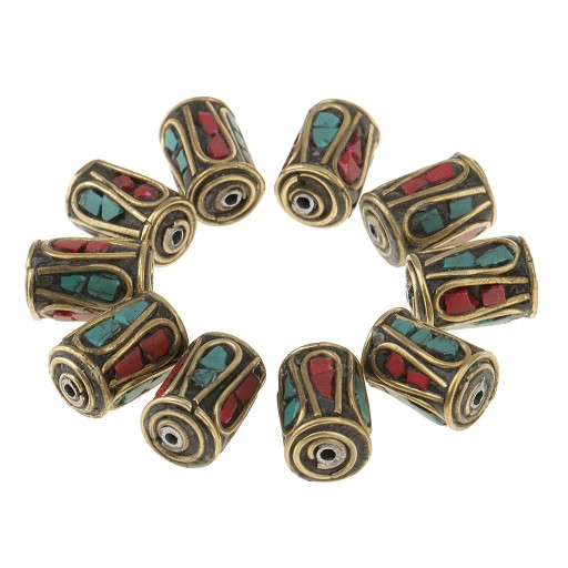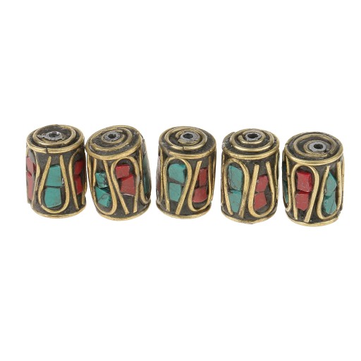 Ręcznie robione koraliki w stylu tybetańskim z koralem i turkusem