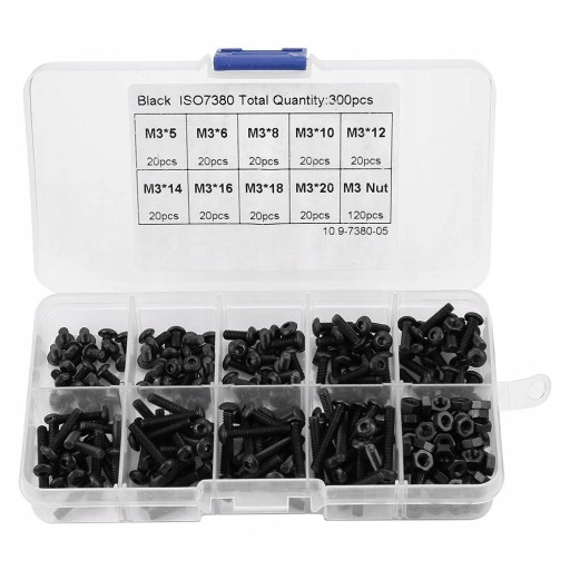 ✅Jest to zestaw śrub z łbem cylindrycznym M3 i nakrętek o wysokiej wytrzymałości 10.9.