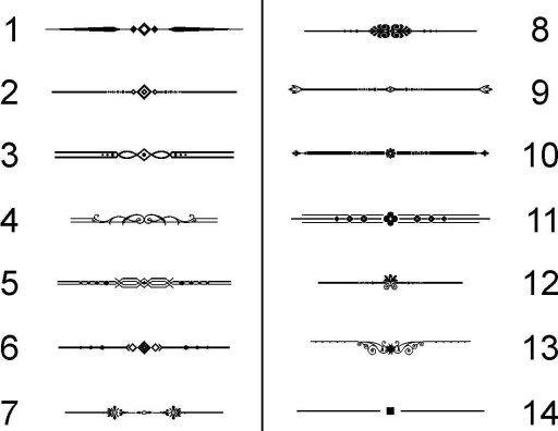 Do wyboru różne ozdobniki, czcionki i grafiki wg. poniższych wzorów.