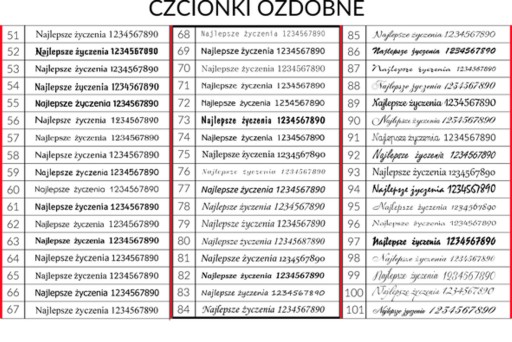 Pomocne w zamawianiu są przykładowe rodzaje czcionek.