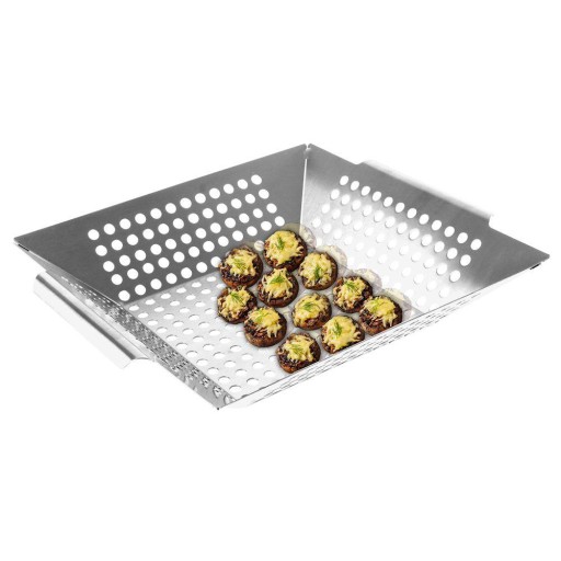 ✅ Kosz grillowy wykonany jest z perforowanej stali nierdzewnej, co gwarantuje odpowiednią cyrkulację ciepła.