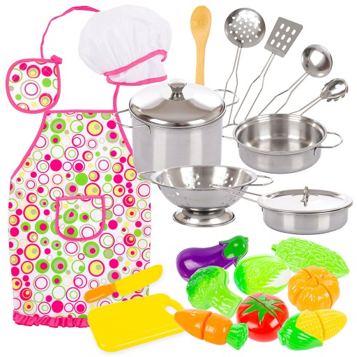 - Zestaw jest świetnym uzupełnieniem dla dzieci posiadających zabawkowe kuchnie, stragany i sklepiki