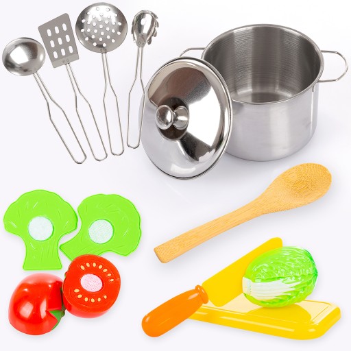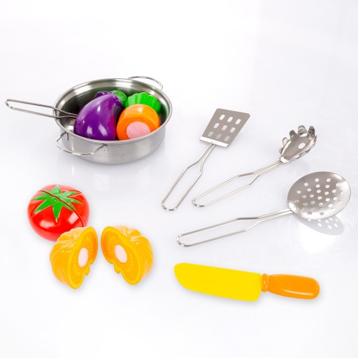 Rewelacyjny zestaw będzie przydatny w każdej domowej kuchni małego szefa kuchni. Świetnie się sprawdzi do gotowania obiadków dla lali i misiów. Dzięki tej zabawce dziecko nauczy się nazw i rozpoznawania popularnych warzyw.