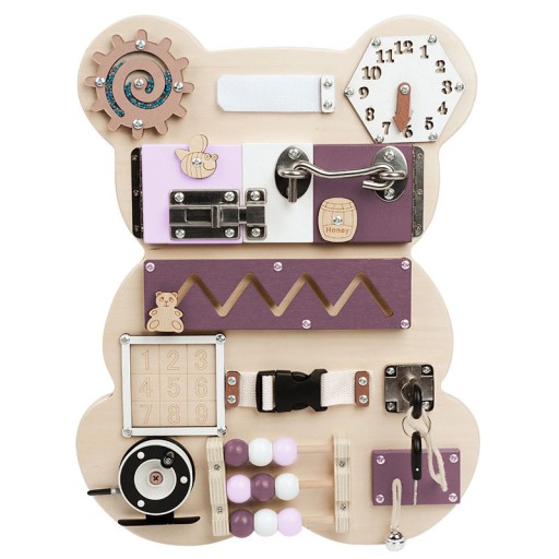 Urocza tablica sensoryczna o kształcie misia z ciekawymi zadaniami to idealny prezent dla każdej pociechy lubiącej kreatywne zabawy!