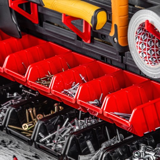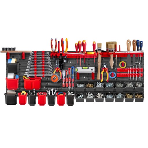 ✅FUNKCJONALNE - kuwety warsztatowe pomieszczą naprawdę sporo elementów drobnicowych i niewielkich narzędzi. Natomiast na uchwytach i półkach powiesisz śrubokręty, klucze, młotki i wiele innych akcesoriów, które chcesz mieć pod ręką.