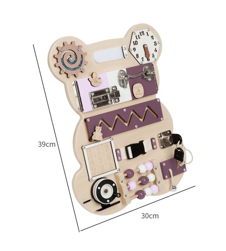 Urocza tablica sensoryczna o kształcie misia z ciekawymi zadaniami to idealny prezent dla każdej pociechy lubiącej kreatywne zabawy!
