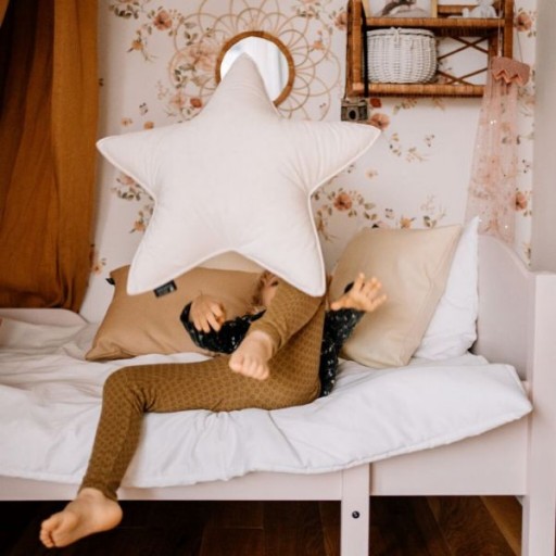 Miękka poduszka - przytulanka w kształcie gwiazki to śliczna dekoracja dziecięcego pokoju, która daje dużo radości!