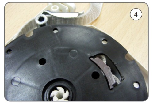 4. Wsuwamy element mocujący wraz z paskiem do szpuli (4)