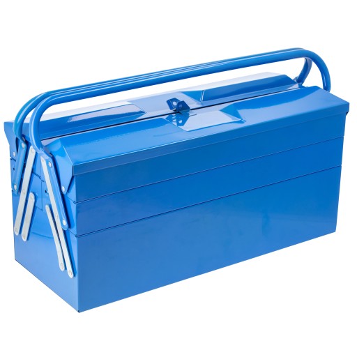 Metalowa skrzynka na narzędzia i drobne elementy. Mocna i stabilna konstrukcja gwarantuje trwałość i niezawodność produktu. Skrzynka sprawdzi się zarówno na budowie jak i w każdym warsztacie.
